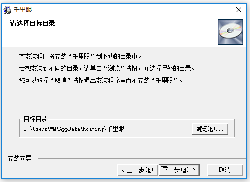 若想安裝到不同的目錄,請單擊“瀏覽”按鈕,并選擇另外的目錄。您可以選擇“取消”按鈕退出安裝程序從而不安裝“千里眼”。