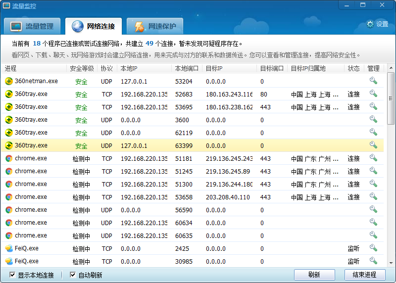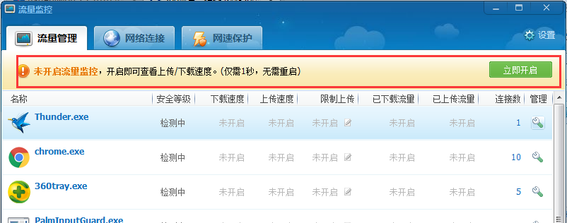 360網(wǎng)絡流量監(jiān)控工具獨立版是kkx為大家分享的一款用于查看檢測電腦中軟件流量使用情況的監(jiān)測工具,通過這款流量監(jiān)控工具可以觀察到每個程序的下載上傳速度、下載上傳流量,可以自定義程序下載速度以及上傳速度,可以禁止程序訪問網(wǎng)絡,非常給力的一款網(wǎng)絡監(jiān)控工具!