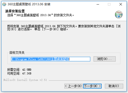 選擇“360主題桌面壁紙2013.06”的安裝文件夾。