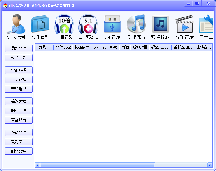 批量音樂轉換(含dts、mlp格式);高級基本參數;支持2.0、5.1、不利于、高質量轉換;支持29種格式。