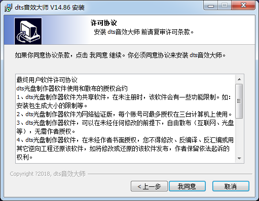 如果你同意協(xié)議條款,點擊我同意繼續(xù)。你必須同意協(xié)議來安裝dts音效大師。