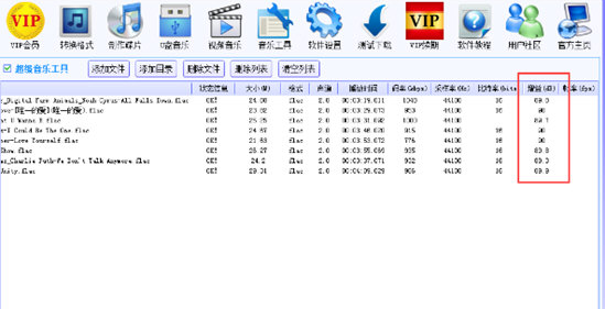 點擊【添加文件】或【添加目錄】按鈕,加入需要調整音量的音頻文件,點擊【音樂工具】,【音樂檢測】可以看到很多都不是標準的90db
