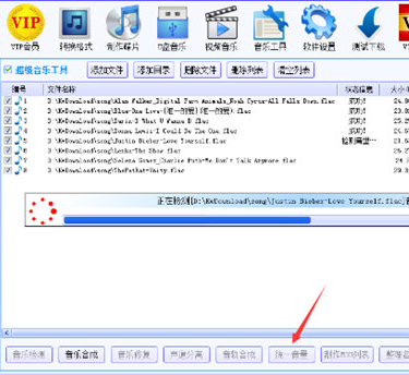 點擊【音樂工具】,然后點擊【統(tǒng)一音量】按鈕,即可開始進行音量調整為統(tǒng)一的90dB標準音量。