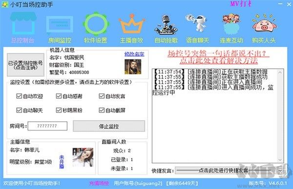直播場控工具在直播的時(shí)候可以讓你的直播更加精彩,小叮當(dāng)場控助手是一款設(shè)置非常合理的工具,它具有自動(dòng)歡迎、自動(dòng)感謝、自動(dòng)發(fā)言、自動(dòng)聊天等功能,無需自己回復(fù)粉絲,智能回復(fù)省心省力,內(nèi)置各類音效,活躍直播間氣氛,還可了解粉絲實(shí)時(shí)動(dòng)態(tài),提升直播效果,還支持多帳號使用。KK下載站為大家同步官網(wǎng)提供新版本下載,有需要的直播人員可轉(zhuǎn)下載使用。