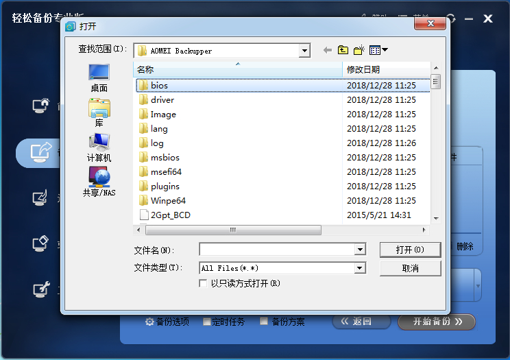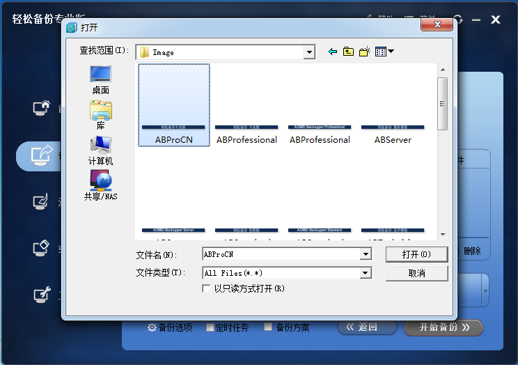 第五步:點擊“打開”,你需要備份的文件便在輕松備份中出現(xiàn)了