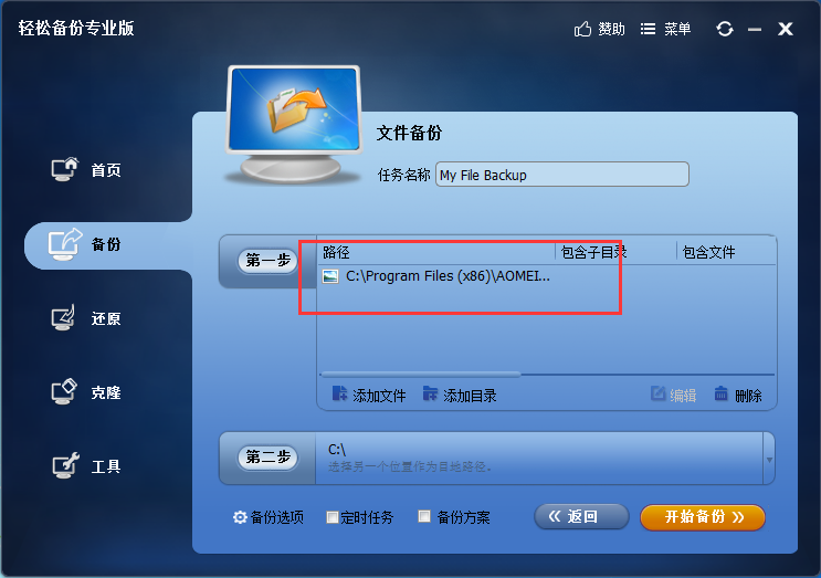 第一步:將下載得到的輕松備份雙擊打開,在左側(cè)找到文件備份功能
