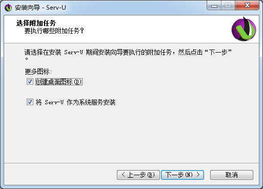 請選擇在安裝Serv一U 期間安裝向?qū)б獔?zhí)行的附加任務,然后點擊“下一步”。