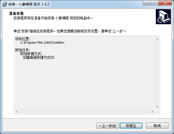 安裝程序現(xiàn)在準(zhǔn)備開始安裝小象編程到您的電腦中。