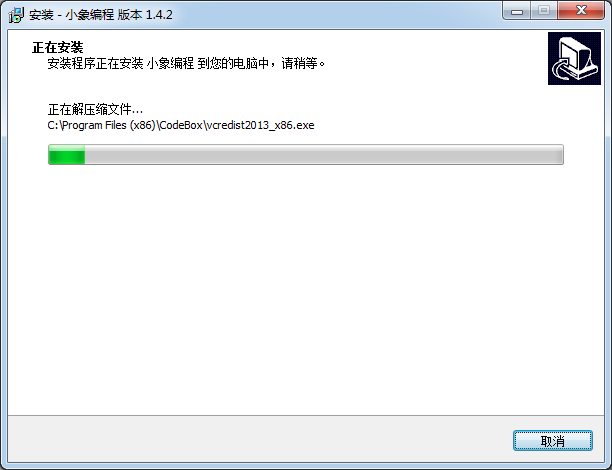 安裝程序正在安裝小象編程到您的電腦中,請稍等。