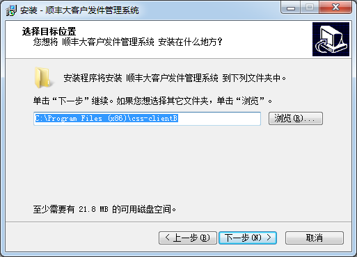 安裝程序?qū)惭b順豐大客戶發(fā)件管理系統(tǒng)到下列文件夾中。