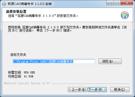 選擇“筑原CA病毒專殺3.1.0.0”的安裝文件夾。