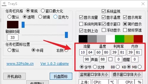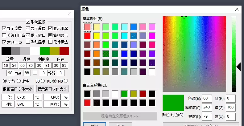 這些數(shù)字分別代表,當(dāng)流量、溫度、利用率、內(nèi)存到達(dá)什么值時(shí),窗口文字展示的顏色;