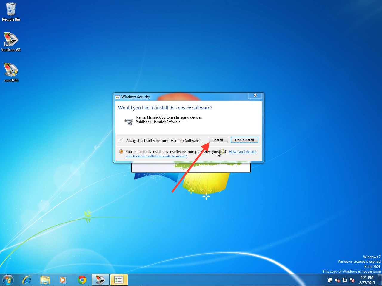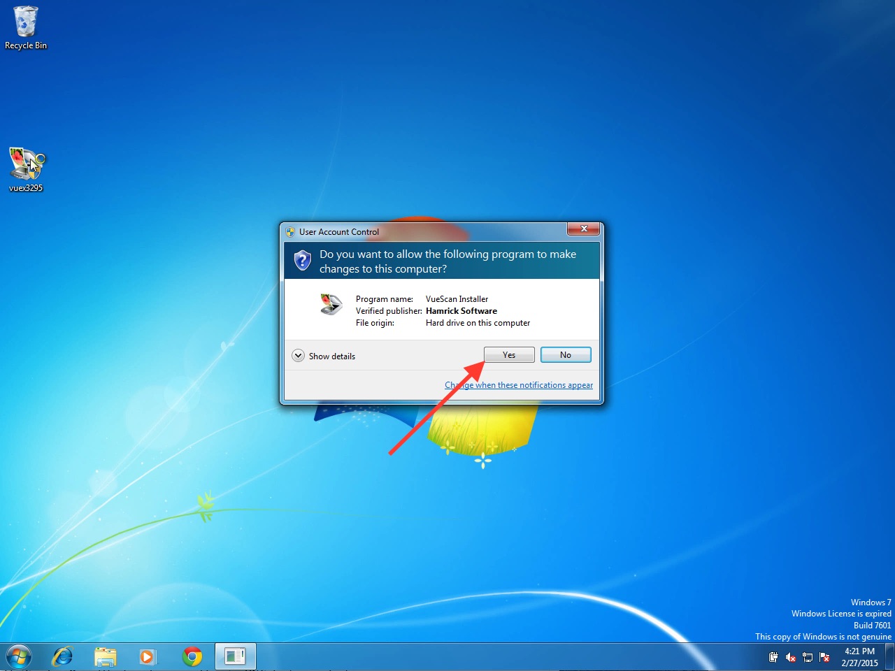 系統(tǒng)可能會詢問您是否允許VueScan對此計算機進行更改。按是。