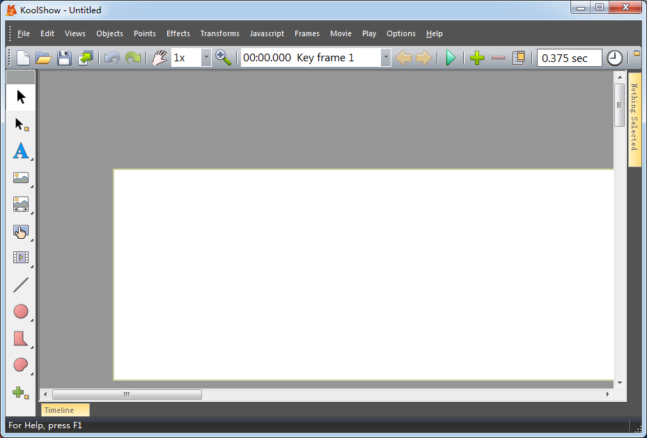 Koolshow是一款非常專業(yè)的HTML5動(dòng)畫制作工具,豐富的繪圖和操縱工具集,為文本、圖像、矢量圖形、音視頻等添加絢麗的效果,支持導(dǎo)出為HTML5,動(dòng)畫GIF,AVI / MP4,SVG和SWF,通過這款軟件給文本、圖像、矢量圖形等多種不同內(nèi)容添加動(dòng)畫效果,用以為文字、圖像、矢量圖格式、聲頻、視頻、ppt加上動(dòng)畫效果,輔助用戶創(chuàng)建高影響力的網(wǎng)站和動(dòng)畫。需要使用這款動(dòng)畫制作工具的用戶不要錯(cuò)過咯!