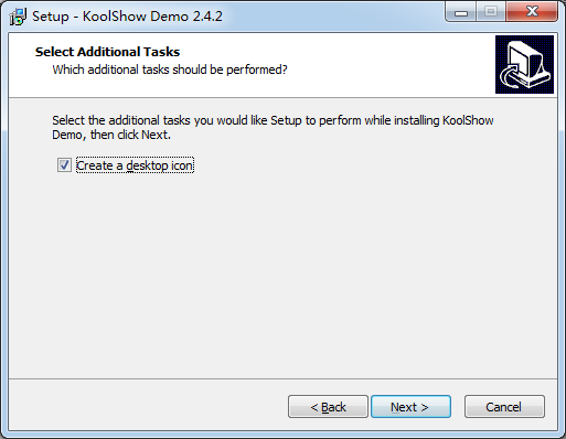 Select the additional tasks you would like Setup to perform while installing KoolShowDemo, then click Next.