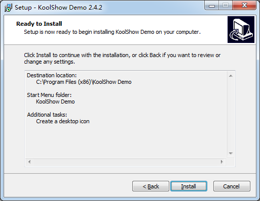 Setup will install KoolShow Demo into the following folder.