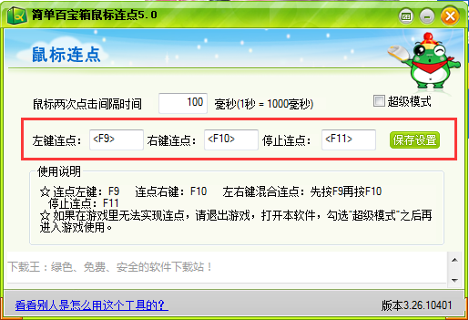 超級模式:支持多種游戲的連點,尤其是網(wǎng)游