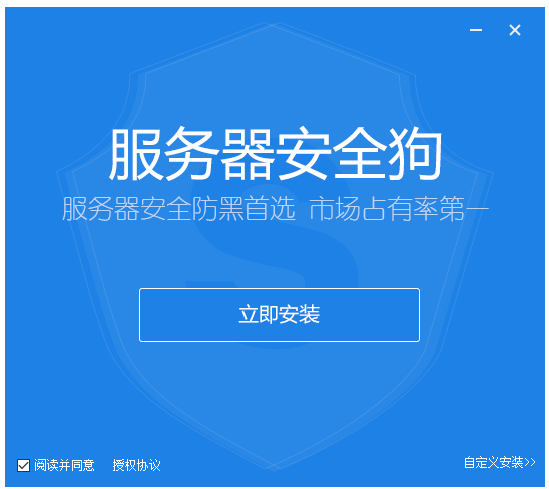 首先將kkx分享的服務(wù)器安全狗壓縮包解壓到本地,雙擊.exe文件,彈出界面,閱讀協(xié)議并同意,點(diǎn)擊【自定義安裝】;