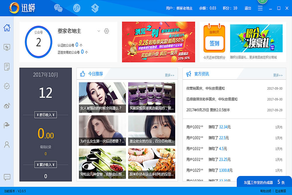 迅蟒自媒體營銷助手是一款素材豐富,可以幫助用戶們進(jìn)行素材編輯,獲取熱點(diǎn)資訊以及素材收集的專用于自媒體領(lǐng)域的輔助工具。編輯功能強(qiáng)大,多賬號登錄,同步文案內(nèi)容,主要擁有素材編輯器、熱點(diǎn)風(fēng)向標(biāo)、多媒體素材庫等功能,使用它可以從來管理微信公眾號,接發(fā)廣告單,包括文字、圖片、視頻等,是搞自媒體人的絕佳好幫手!