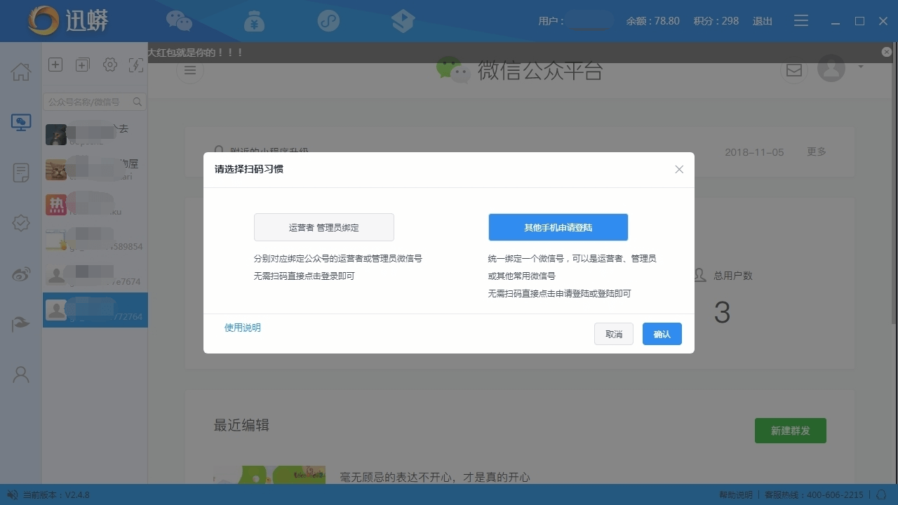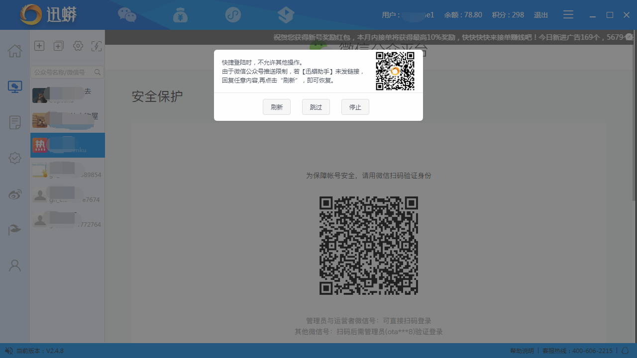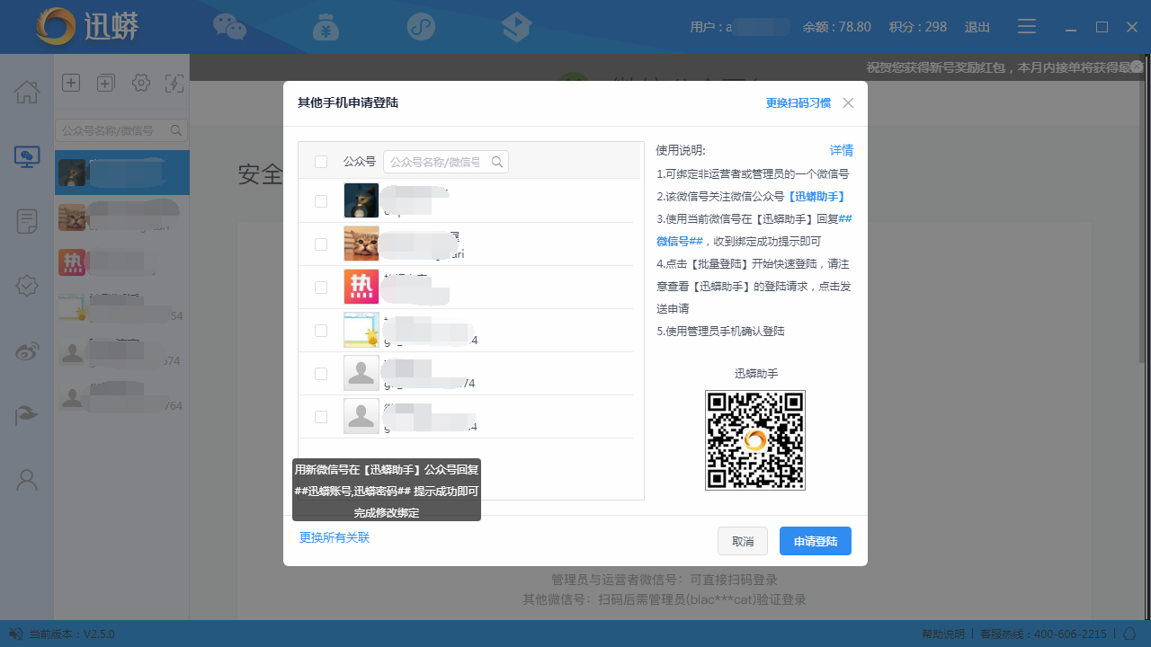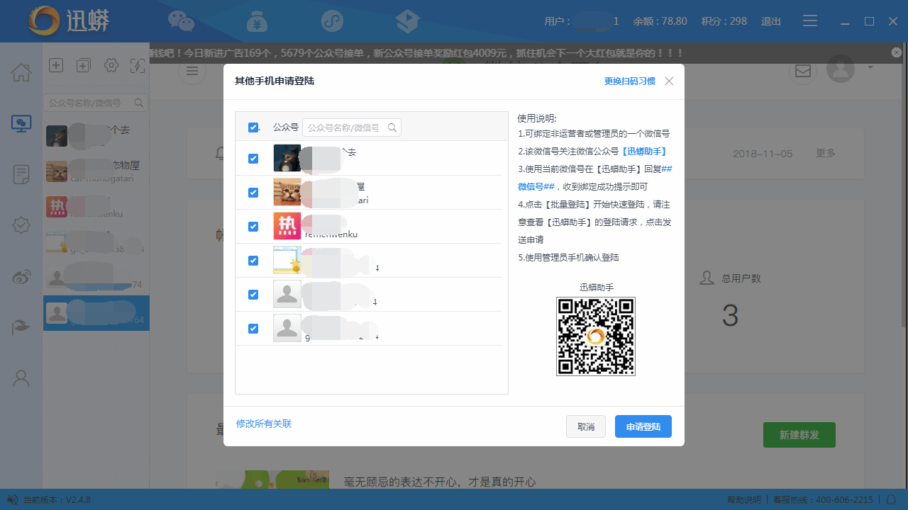點(diǎn)擊我的公眾號最右側(cè)新增的閃電圖標(biāo),即可進(jìn)入批量登陸功能