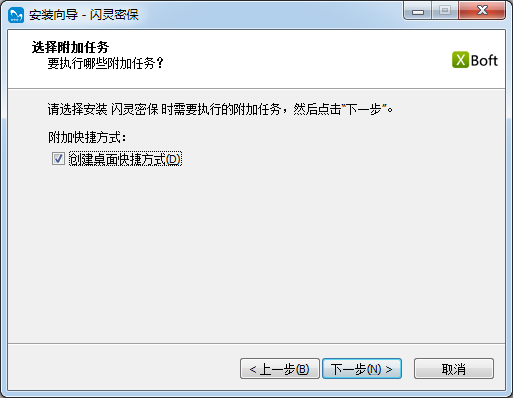 請選擇安裝閃靈密保時需要執(zhí)行的附加任務(wù),然后點擊”下一步”。