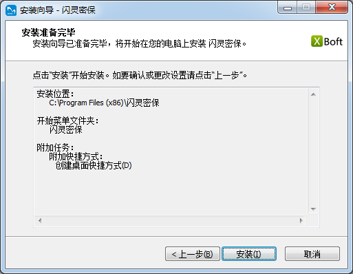 安裝向?qū)б褱?zhǔn)備完畢,將開始在您的電腦上安裝閃靈密保。