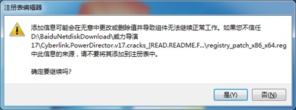 運行安裝包內(nèi)的registry_patch_x86_x64.reg注冊表編輯器,點擊是