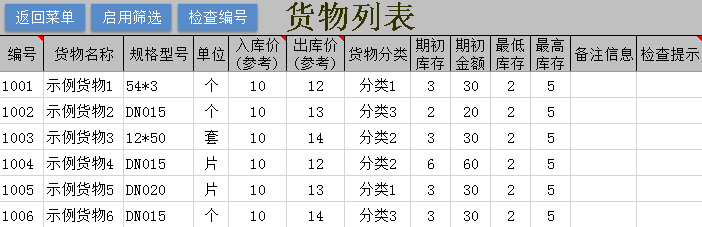 ?。?)編號(hào):就是貨物編碼,就像人的身份證一樣,編號(hào)是貨物的唯一標(biāo)識(shí),每個(gè)貨物必須有一個(gè)編號(hào)并且不能重復(fù)。在制定編號(hào)時(shí)也可以根據(jù)企業(yè)的編碼規(guī)則制定,也可以像示例數(shù)據(jù)那樣直接使用順序編號(hào)。