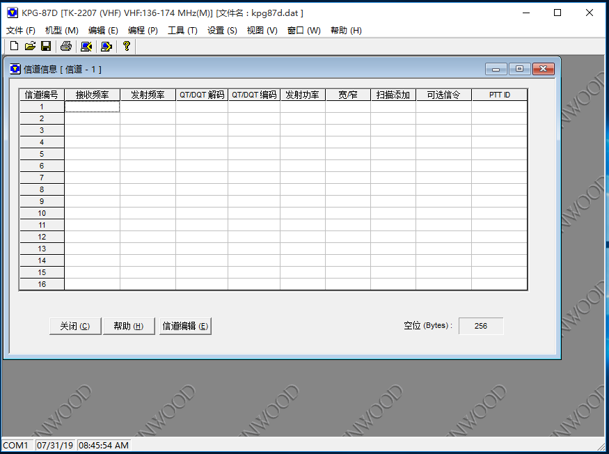 對講機(jī)寫頻軟件(KPG-87D),這是一款通用性極強(qiáng)的對講機(jī)寫頻工具,功能完善、操作靈活,它可以對對講機(jī)進(jìn)行寫頻操作,支持修改信道信息,KPG-87D這個(gè)對講機(jī)編程寫頻軟件支持85%的國產(chǎn)對講機(jī)型號,操作簡單,功能豐富,能夠?qū)χv機(jī)的基本信道信息進(jìn)行修改,還擁有測試模式等功能。進(jìn)行編程,建議您首先使用本軟件輸入所有必要的編程數(shù)據(jù),并將這些數(shù)據(jù)保存到電腦中。完成編程數(shù)據(jù)之后,使用所存儲的數(shù)據(jù)對對講機(jī)進(jìn)行編程。如果需要,可以打印出編程數(shù)據(jù)。您還可以讀取對講機(jī)數(shù)據(jù)并在電腦上進(jìn)行修改。