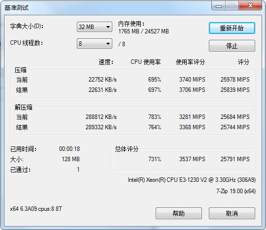 基準(zhǔn)測(cè)試:7-ZIP還提供了基準(zhǔn)測(cè)試功能,可測(cè)試你的電腦壓縮、解壓縮性能。