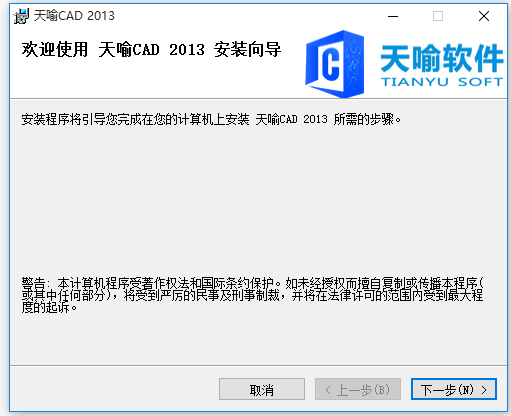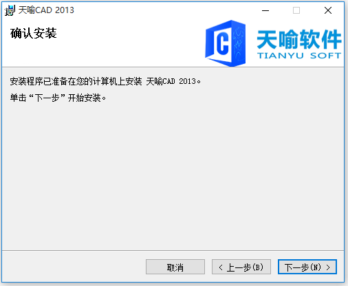 安裝程序已準(zhǔn)備在您的計(jì)算機(jī)上安裝天喻CAD2013。單擊“下一步”開(kāi)始安裝。