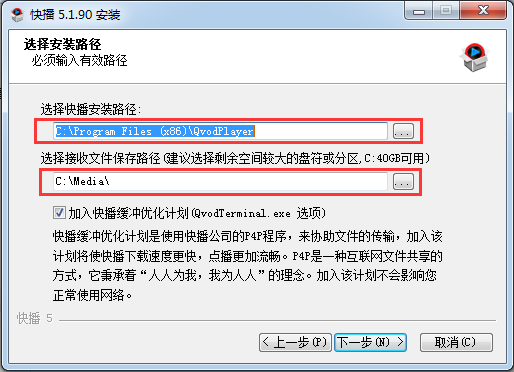 1.到本站下載安裝快播,打開安裝程序,選擇安裝組件,勾選同意接受協(xié)議