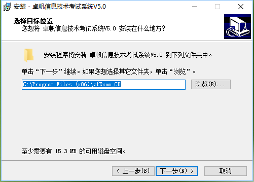 安裝程序將安裝卓帆信息技術考試系統(tǒng)V5.0到下列文件夾中。
