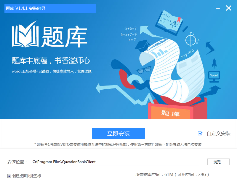 1.將kkx分享的考一考學習客戶端,點擊自定義安裝,選擇軟件安裝位置;