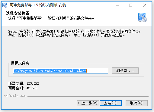 選擇“可牛免費(fèi)殺毒1.5 論壇內(nèi)測版”的安裝文件夾。