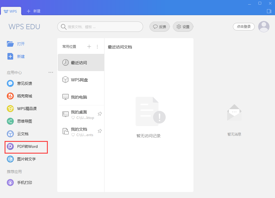 1、打開WPS Office教育版,點(diǎn)擊左菜單中的PDF轉(zhuǎn)Word,
