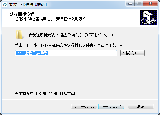 安裝程序將安裝3n播播飛屏助手到下列文件夾中。