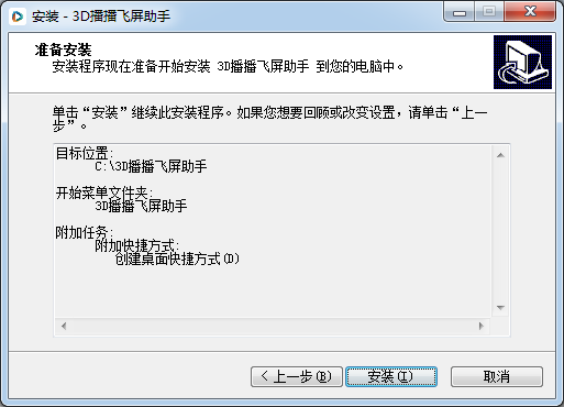 安裝程序現在準備開始安裝3播播飛屏助手到您的電腦中。