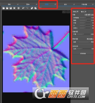 細(xì)節(jié)是這個葉子紋理上的細(xì)節(jié),表面比例是這個凹陷下去的一個比例。確定ok后到這個頁面,默認(rèn)是在置換,我們切換到法線,旁邊的那些參數(shù)也可以在進(jìn)行一次調(diào)整