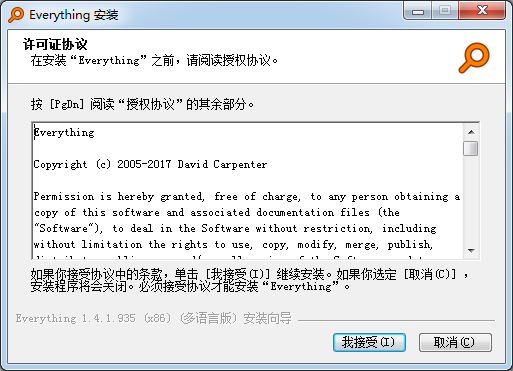 在安裝“Everything”之前,請i閱讀授權(quán)協(xié)議。