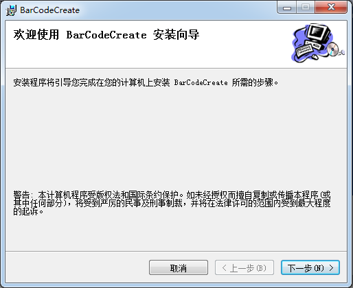 1.安裝程序?qū)⒁龑?dǎo)您完成在您的計算機(jī)上安裝 BarCodeCreate所需的步驟。點(diǎn)擊下一步進(jìn)行安裝;