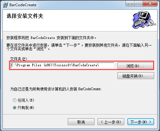 2.安裝程序?qū)袯arCodeCreate安裝到下面的文件夾中。