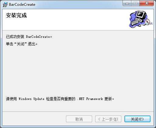 3.已成功安裝 BarCodeCreate o單擊“關(guān)閉”退出。