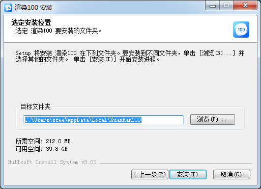 Setup將那張渲染100在下列文件夾。要安裝到不同文件夾,單擊[瀏覽B)...〕并選擇其拍的文件夾。單擊[安裝I]開始安裝進程。