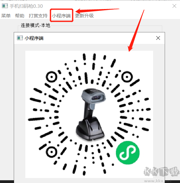 2.手機搜索小程序【手機掃碼槍】,或者PC端菜單欄有小程序按鈕,點擊開會有碼,使用微信掃一下