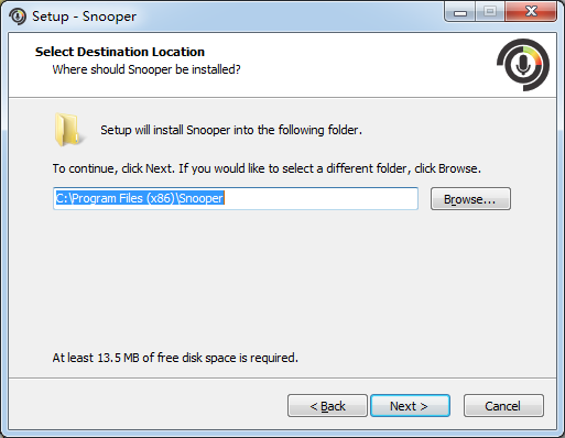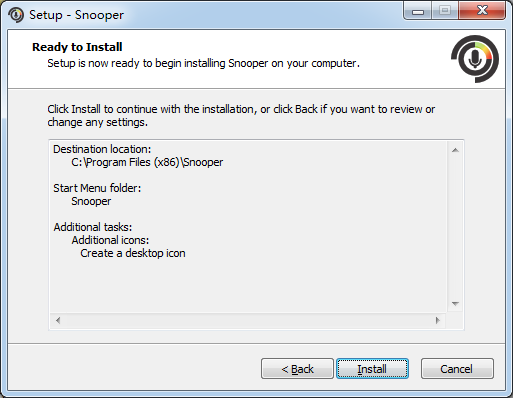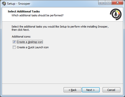 select the additional tasks you would like Setup to perform while installing Snooper,then dick Next.