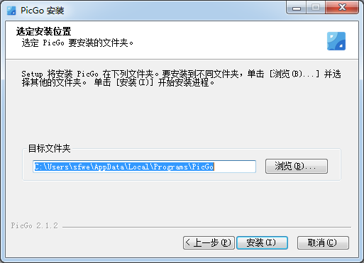 2.setup將安裝 PicGo在下列文件夾。要安裝到不同文件夾,單擊[瀏覽B)...〕并選
