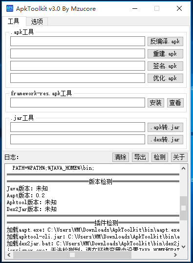 使用“反編譯.apk”功能時(shí),路徑中不能出現(xiàn)任何中文字符或全角字符!