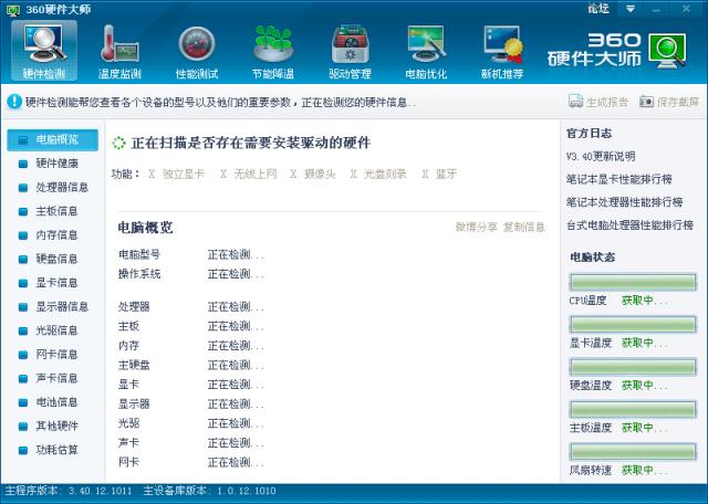 360硬件大師是kk下載給大家發(fā)呢系那個介紹的一款用于檢測電腦主機硬件詳細信息的檢測工具,現(xiàn)在更新后被稱為【魯大師】,其實是奇虎收購了魯大師,然后將自己的360硬件大師和魯大師的功能相結(jié)合而生的一款硬件工具,除了可以檢測各項硬件信息之外還可以用來清理垃圾,安裝電腦驅(qū)動,溫度檢測,跑分,壓力測試等功能呢!