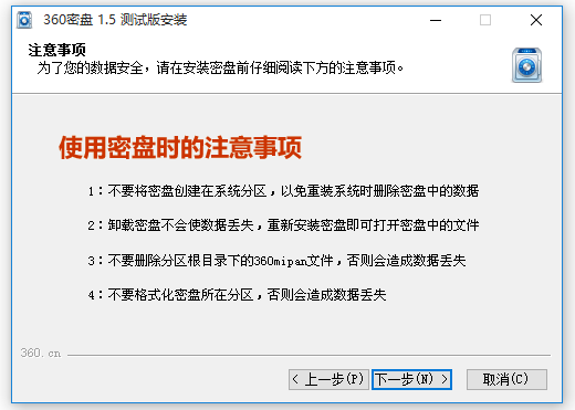這個向?qū)⒅敢阃瓿?ldquo;360密盤”的安裝進程。